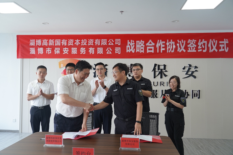 為深入貫徹落實(shí)“三提三爭”要求,7月20日上午,淄博市保安服務(wù)有限公司與淄博高新國有資本投資有限公司戰(zhàn)略合作協(xié)議簽約儀式在淄博市保安服務(wù)有限公司會(huì)議室舉行。淄博高新國有資本投資有限公司黨委書記、董事長劉博,淄博市保安服務(wù)有限公司黨委書記、董事長付志欣出席簽約儀式。