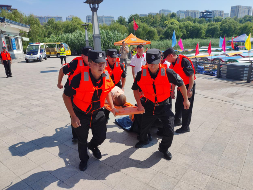 為切實提升防溺水事故應(yīng)急處置和救援能力,有效預防和減少溺亡事故,進一步做好齊盛湖公園安全保障工作,2023年8月4日,市保安公司在盛湖舉行“防溺水應(yīng)急救援演練”。市保安公司黨委委員、副總經(jīng)理李鵬,市城市管理局黨組成員、市公園城市服務(wù)中心主任伊繼忠,齊盛湖公園管理辦公室科長王方福出席活動。