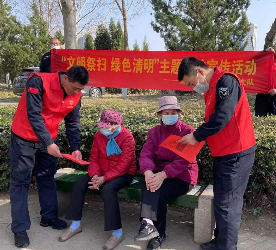 臨淄大隊(duì)組織志愿者走進(jìn)社區(qū)、公園,通過(guò)向群眾發(fā)放文明祭祀倡議書(shū)、懸掛宣傳橫幅等方式,將文明祭掃的理念和方法傳遞給群眾,號(hào)召大家從自身做起,告別陋習(xí)、文明祭掃,盡量減少因焚香燒紙引發(fā)的火災(zāi)隱患和環(huán)境污染,展現(xiàn)文明城市風(fēng)采,營(yíng)造文明祭掃的良好氛圍。