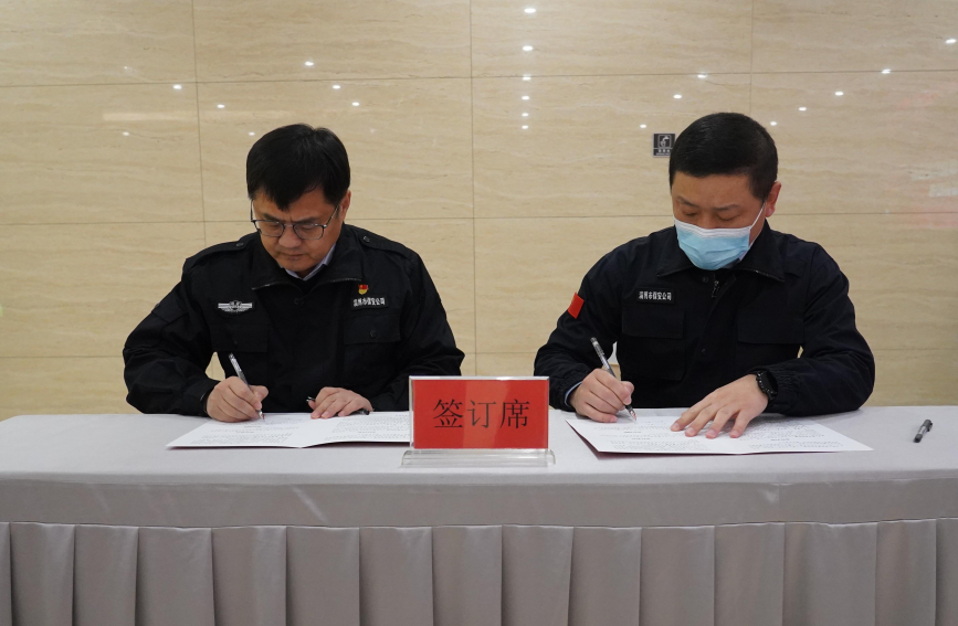 黨委書記、董事長付志欣同志與中層代表簽訂2023年度黨風(fēng)廉政建設(shè)目標(biāo)責(zé)任書、2023年度安全生產(chǎn)目標(biāo)責(zé)任書,與押運(yùn)隊員代表簽訂持槍人員規(guī)范用槍承諾書。